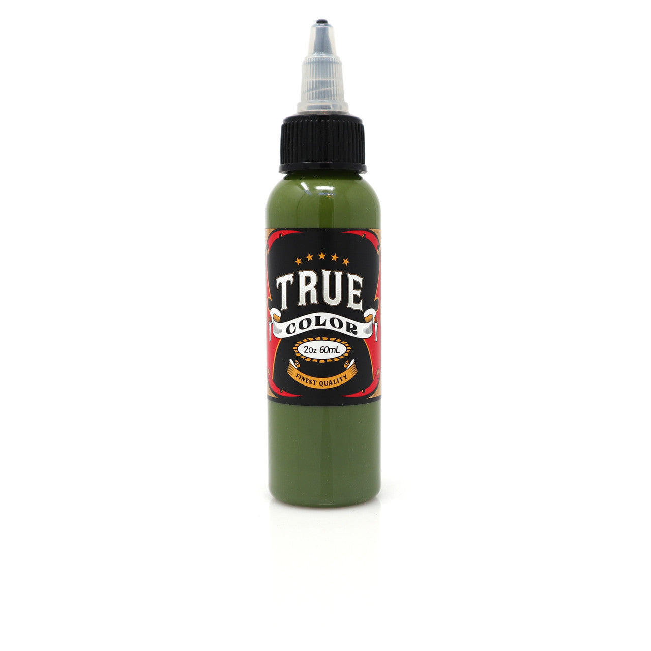 A medium earthy olive green. This blends and mixes into Ochre and Deep Green nicely. Try adding a few drops of The Good Black for a deeper darker olive tone.